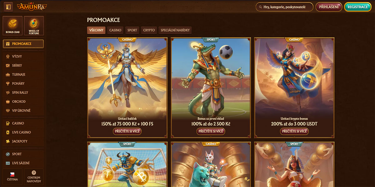 Casino AmunRa se prezentuje jako kompletní online herní platforma, která kombinuje tradiční kasinové hraní se sportovním a živým sázením. Rozhraní platformy tyto nabídky zabaluje do designu inspirovaného starověkým Egyptem, který zlepšuje uživatelský zážitek, aniž by obětoval funkčnost.