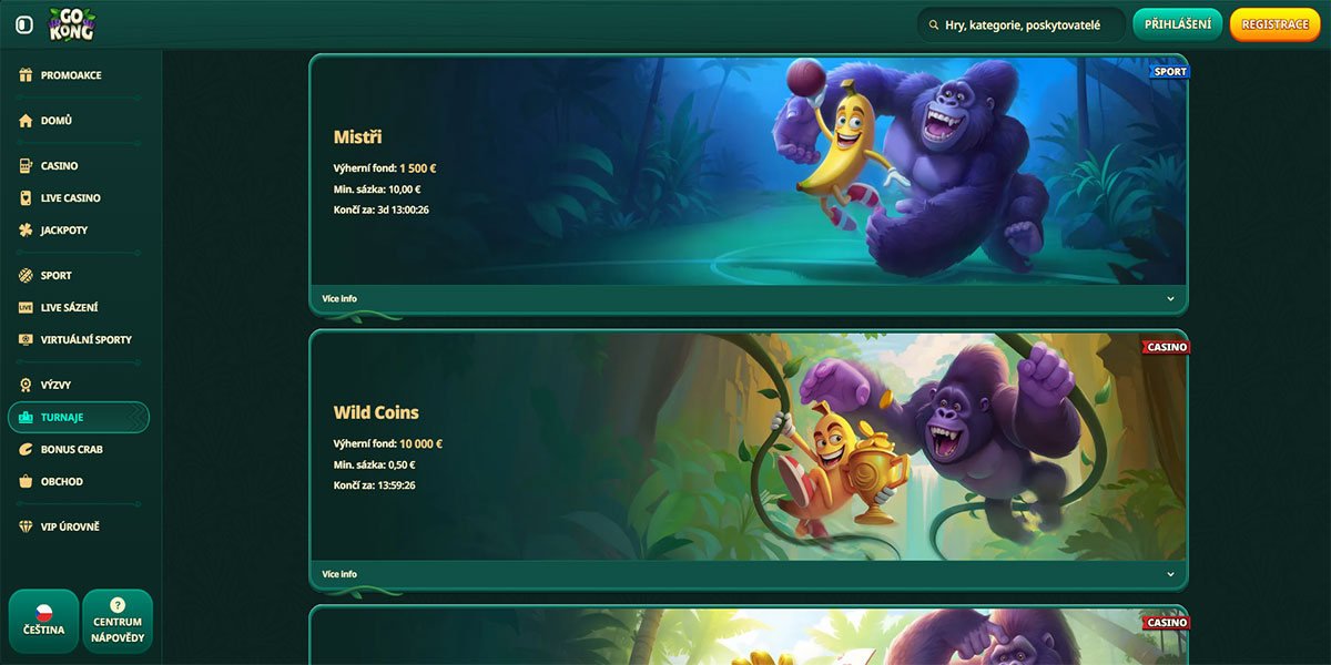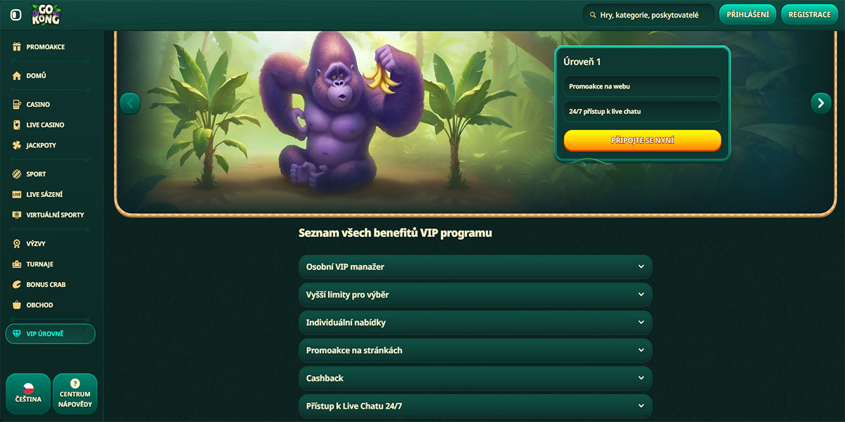 Casino GoKong je online herní platforma, která od svého spuštění rychle rozšířila svou přítomnost, zejména mezi hráči v Česku. Funguje na základě platné herní licence a podporuje širokou škálu bankovních možností včetně tradičních metod a kryptoměn. Stránky nabízejí rozsáhlou herní knihovnu poháněnou desítkami známých poskytovatelů softwaru, s více než 10 000 tituly, které zahrnují video automaty, klasické automaty, stolní hry a rozsáhlou sekci s živými dealery se stovkami živých stolů. GoKong také nabízí pravidelné bonusy a akce, jako jsou uvítací bonusy a bonusy k opětovnému vkladu, a také víceúrovňový VIP program, který odměňuje pravidelné hráče výhodami, jako jsou vyšší limity pro výběry a cashback.