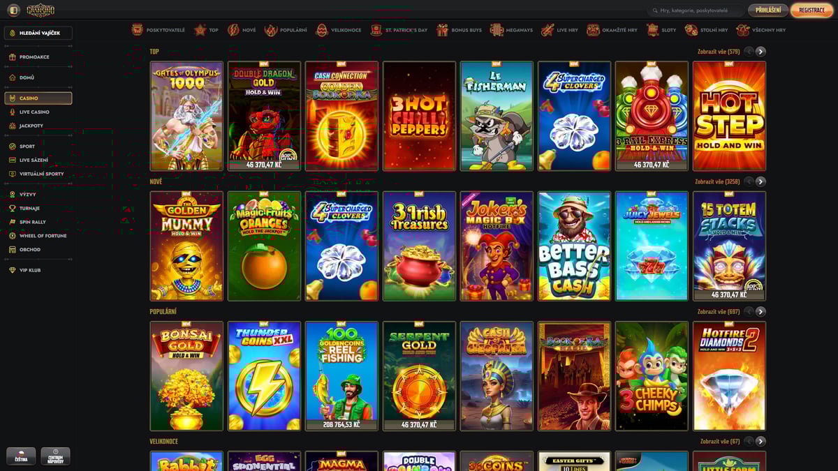 - Silné zastoupení poskytovatelů (Evolution, Pragmatic Play, Play’n GO, NetEnt, Microgaming, Nolimit City atd.)
