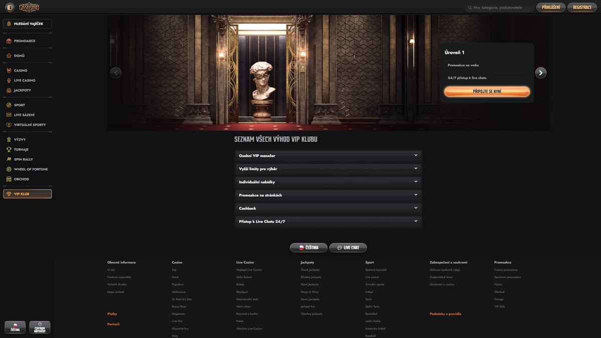 VIP program VIP program Víceúrovňový VIP věrnostní program pro časté nebo vysoce aktivní hráče, nabízející individuální odměny, jako jsou exkluzivní bonusy, rychlejší výběry a osobní manažeři účtů.