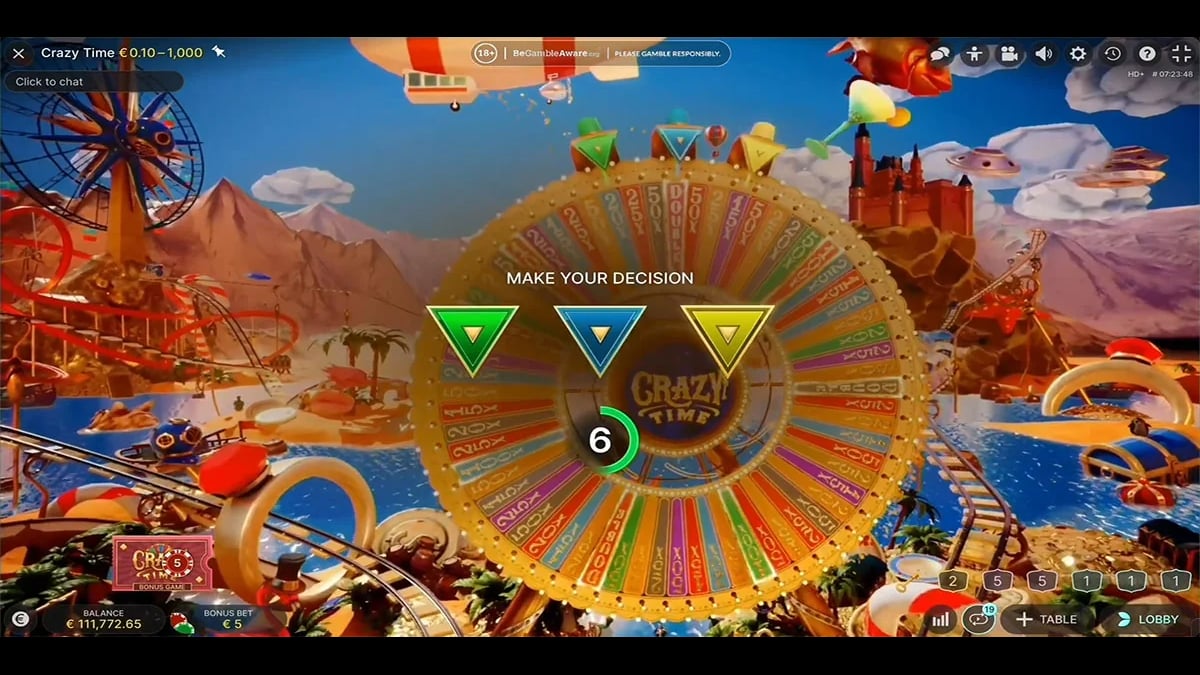 Crazy Time se odlišuje především svými čtyřmi bonusovými koly, která transformují jednoduchý koncept točícího se kola na komplexní zážitek s vysokou volatilitou. Každá bonusová funkce – Cash Hunt, Coin Flip, Pachinko a bonus Crazy Time – přináší jinou herní mechaniku, tempo a strukturu výplat, což zajišťuje rozmanitost při zachování konzistentního základního formátu. To, co dělá tyto funkce obzvláště působivými, je jejich schopnost dramaticky zvýšit potenciální výnosy ve srovnání se základními číselnými segmenty, přičemž často slouží jako hlavní hybatelé velkých výher. Relativně nízká frekvence výskytu některých bonusů, zejména samotného Crazy Time, přispívá k volatilní povaze hry, vytváří očekávání a zvyšuje emocionální zapojení pokaždé, když se kolo zpomalí poblíž bonusového segmentu.