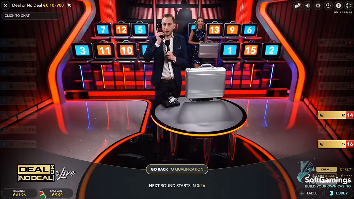 Na začátku každého kola probíhá kvalifikační fáze. Hráči umístí sázku a následně se spustí náhodný mechanismus (např. otočení trezoru), který určí, kteří hráči postoupí do hlavního kola s 16 kufříky. Kvalifikace tak přidává prvek napětí a šance ještě před samotnou hlavní hrou.