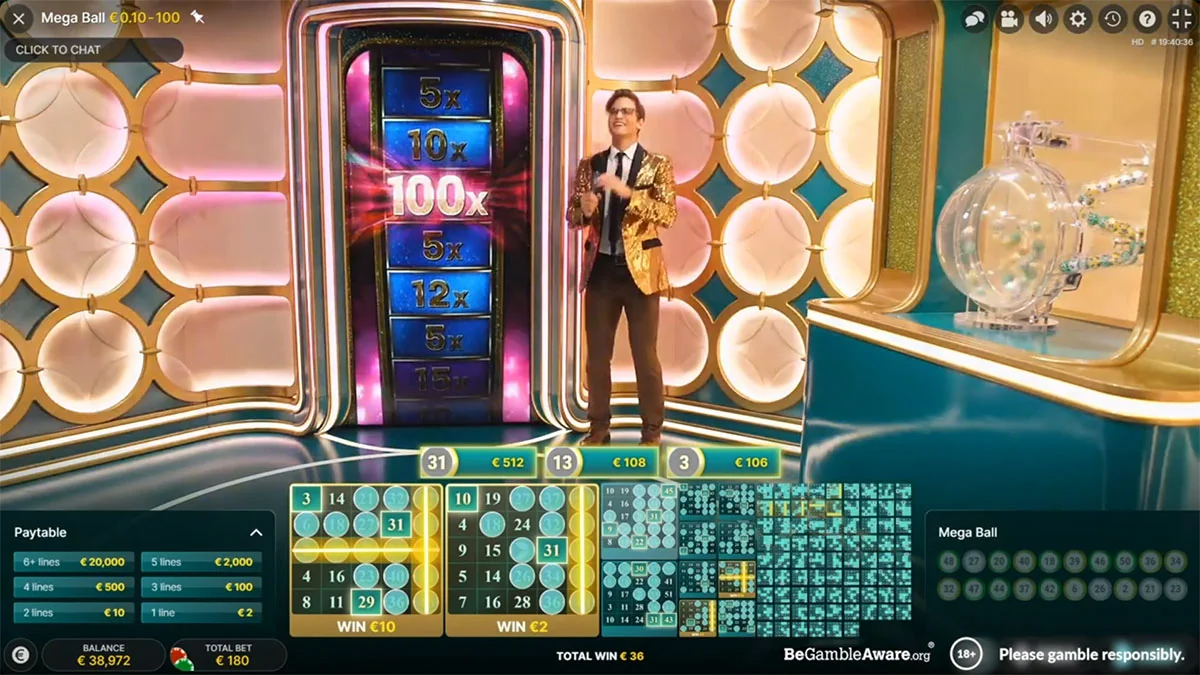Živý moderátor je klíčový pro atmosféru game show. Otevírá a uzavírá sázení, uvádí losování kuliček, oznamuje čísla a hodnoty násobičů a komunikuje s hráči prostřednictvím live chatu, což výrazně zvyšuje autenticitu a zábavnost hry.