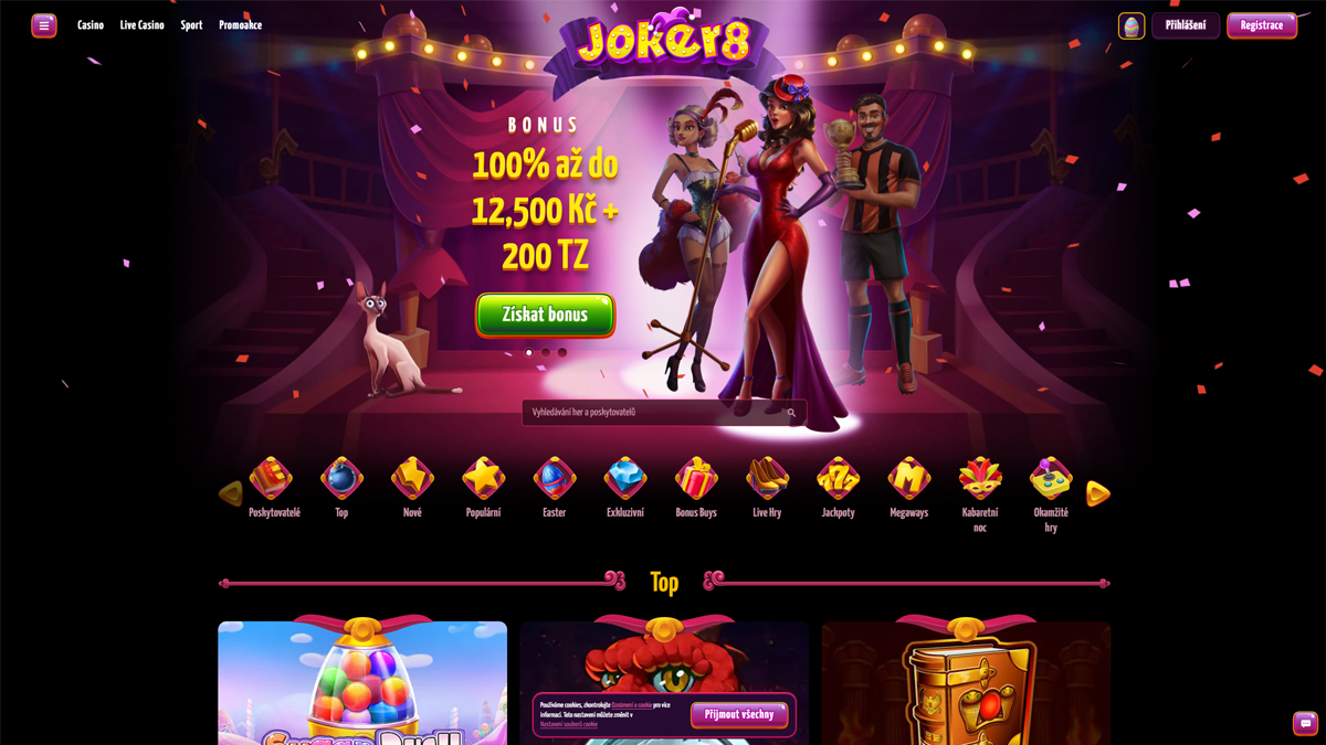 Casino Joker8 je mezinárodní online casino, které nabízí komplexní herní zážitek s rozsáhlou knihovnou automatů, her s živými dealery a možnostmi sázení na sporty. Platforma poskytuje hráčům širokou škálu bonusů, turnajů a VIP program určený k odměňování loajality. Web Joker8 je plně optimalizován pro mobil i desktop a umožňuje tak bezproblémový přístup bez nutnosti stahovat aplikaci.