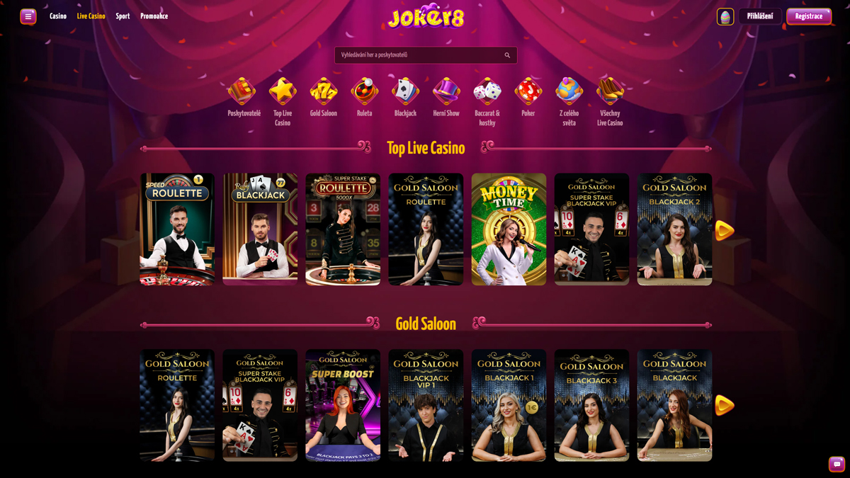 - Dobře vyvinuté live casino s mnoha stoly rulety, blackjacku, baccaratu a pokeru.