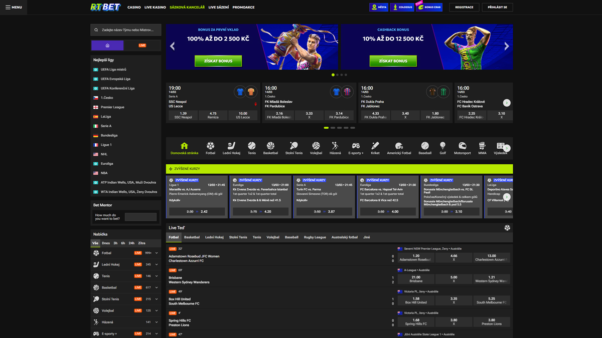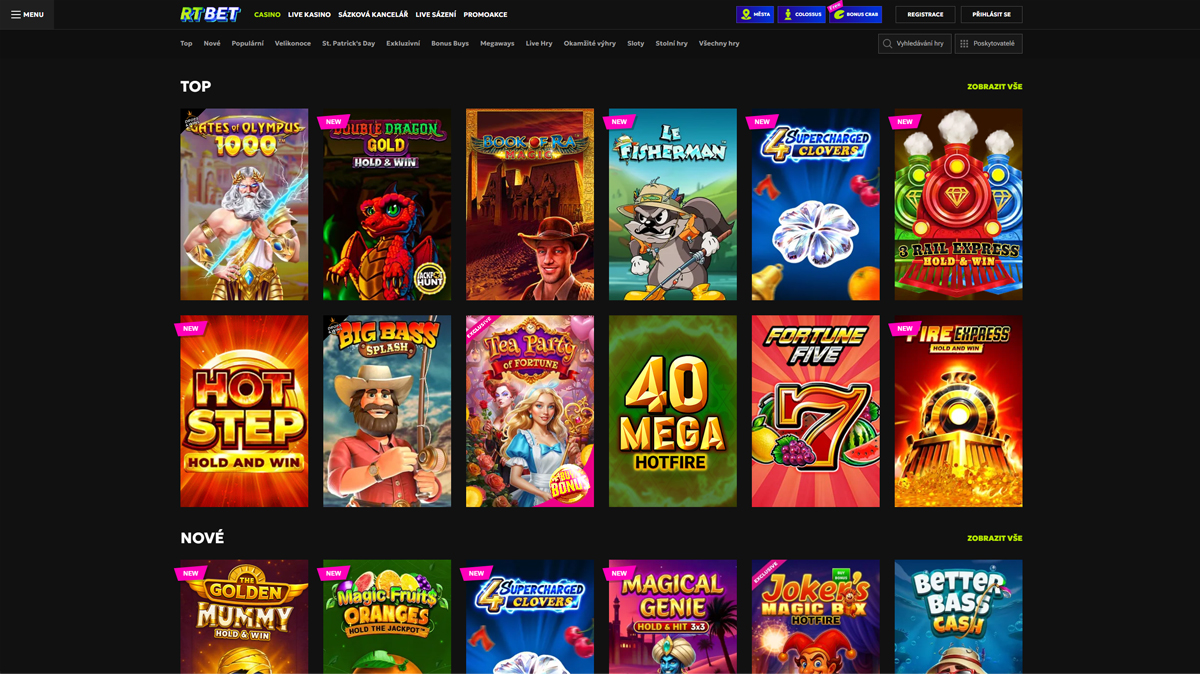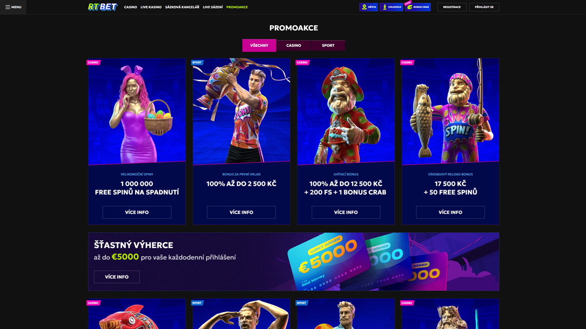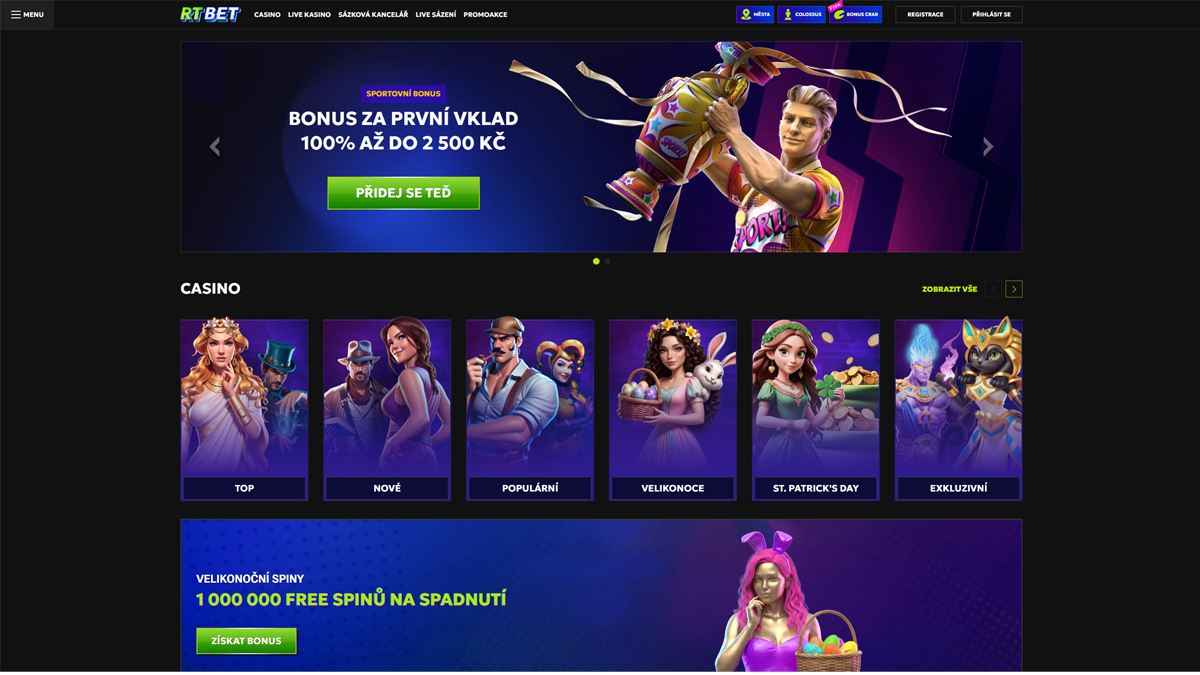 RT Bet Casino je moderní all-in-one platforma vytvořená pro hráče, kteří chtějí rozmanitost her, rychlé bankovní možnosti a plynulou použitelnost na počítači i mobilu. Toto casino kombinuje rozsáhlý katalog automatů s plnohodnotnou sekcí živých her a integrovanou sportovní sázkou, takže nejste nuceni měnit weby nebo aplikace, abyste změnili to, co hrajete. Pro Českou republiku jsou praktické výhody jasné. Výchozí měnou je CZK, minimální vklad je 250 CZK a minimální výběr je také 250 CZK, což udržuje platformu dostupnou pro příležitostné hraní a kontrolovanou správu bankrollu. Bankovní operace jsou flexibilní s podporou plateb kartou, bankovního převodu a oblíbených metod typu e-wallet, plus silné pokrytí kryptoměn včetně BTC, ETH, USDT, USDC, XRP, BNB a dalších. RT Bet běží na platformě iGate, založené v roce 2023, a nabízí mobilní hraní, VIP program a přístup k sportsbooku, přičemž pro standardní promoakce není vyžadován žádný bonusový kód.