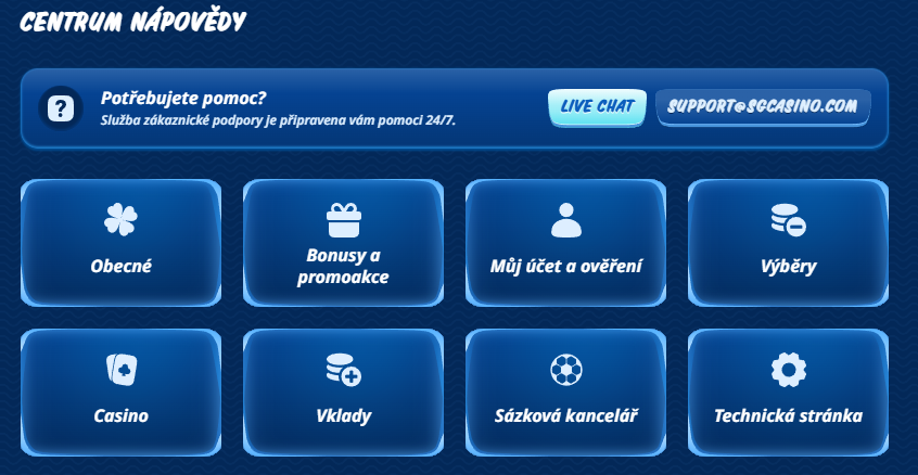 Jasné a praktické odpovědi na běžná témata týkající se SG Casino, včetně přístupu, plateb, funkcí platformy a používání účtu.