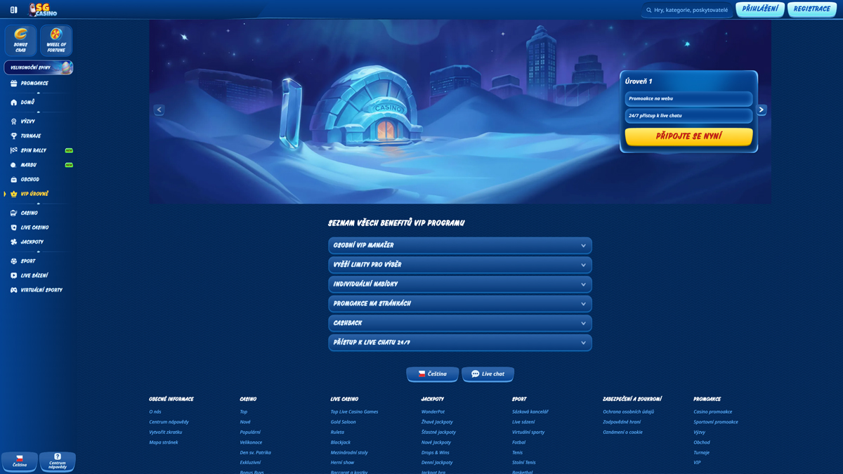 VIP program VIP program Víceúrovňový VIP věrnostní program pro časté nebo vysoce aktivní hráče, nabízející individuální odměny, jako jsou exkluzivní bonusy, rychlejší výběry a osobní manažeři účtů.