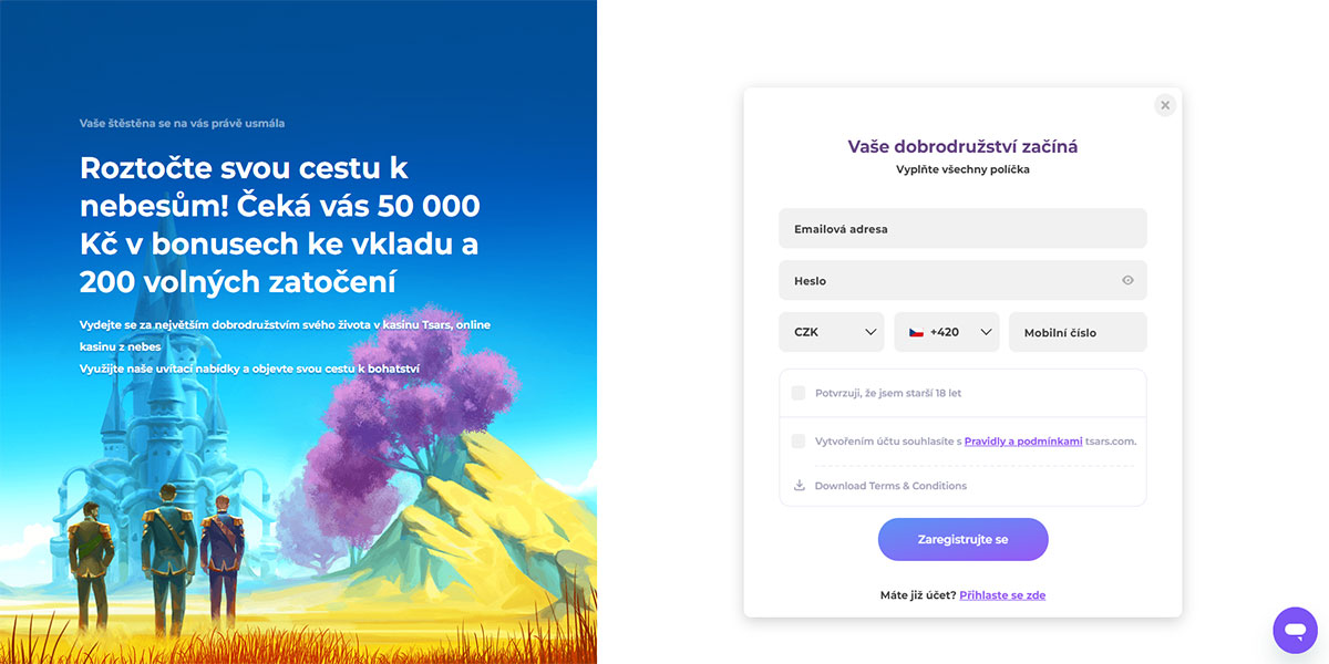 Tsars Casino je online casino, které na svých oficiálních stránkách výrazně propaguje uvítací bonus až 2 000 € + 200 Free Spinů. Platforma hostí široký výběr kasinových her včetně slotů a mnoha dalších titulů, které mohou hráči procházet v seznamu her. Zveřejněné obchodní podmínky vyžadují, aby uživatelé byli starší 18 let a před hraním souhlasili s pravidly kasina a postupy KYC; tyto podmínky také pokrývají proces registrace a ověření účtu. Platby a hraní probíhají prostřednictvím stránek s důrazem na zodpovědné hraní a jasné uživatelské povinnosti.
