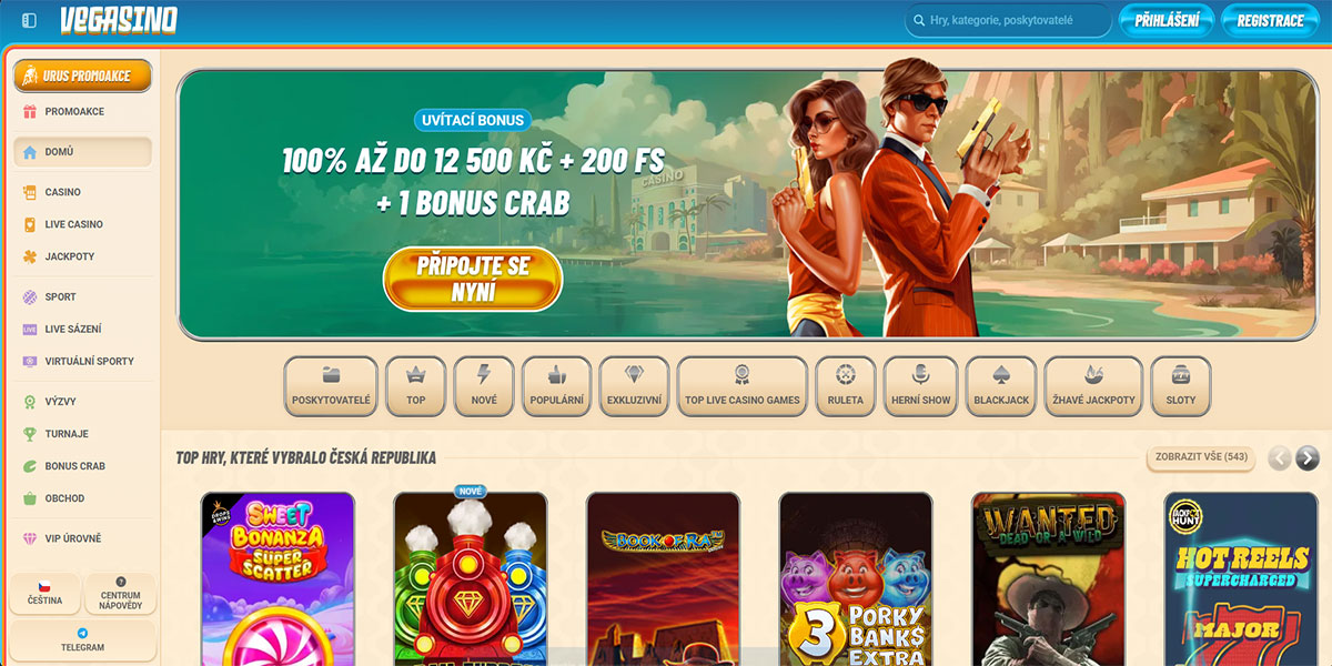 Platforma Vegasina zahrnuje tisíce automatů, stolních her, jackpotů, stolů s živými dealery a kompletní sportovní knihu s možnostmi živého sázení — vše přístupné pod jedním účtem.